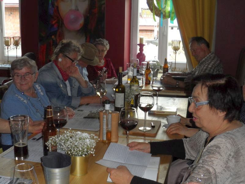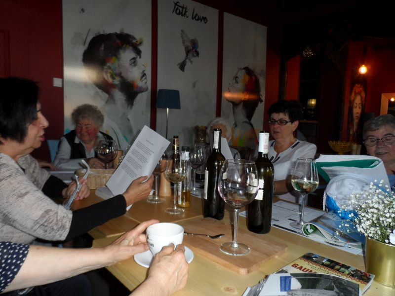 Książka wywołała ciekawą dyskusję na temat Gruzji. Czy jest to — jak sugerują autorzy — „szaszłyk, który łączy kawałki różnych gatunków?”. Według pani Urszuli „Gruzini mają dar upajania się słowami”, szanują tradycję i potrafią ją sprzedać, a Gruzja to kraj, w którym „tak naprawdę nikt nie jest sam”. Pani Elżbieta opowiedziała o Gruzji z perspektywy turystycznej, przywołała obraz Pirosmaniego Uczta, który jest symbolem tego kraju. Pani Danuta natomiast wspomniała postać królowej Tamary, a także przeczytała kilka gruzińskich anegdot. Według pana Leszka „książka jest świetnie napisana. Gruzja to kraj wspaniały, cudowny, życzliwi, choć wojowniczy ludzie. Niestety — zatraca się charakter tego państwa, obce trendy. Kraj jak na wulkanie, co doskonale oddali autorzy”. Głos zabrały też pani Barbara i pani Anna, które miały okazję odwiedzić to państwo. Zdaniem pani Barbary (była w Gruzji w czasach ZSRR) „tam można było wszystko, Gruzini to wolny naród”. Pani Anna zwiedziła ten kraj dwa lata temu, dlatego mieliśmy okazję obejrzeć album współczesnych zdjęć dokumentujących państwo, o którym rozmawialiśmy. Opowiedziała także o lokalnych potrawach, których próbowała. Klubowicze odnieśli się również do powszechnego pijaństwa — według pana Leszka Gruzini mają cztery żołądki, a pani Anna stwierdziła, że tam „od niemowlaka przyzwyczaja się do picia alkoholu”. Toasty wznosili gruzińskim winem również Klubowicze. Był także akcent muzyczny podczas naszego literackiego spotkania — dzięki panu Leszkowi i jego ukulele mogliśmy przenieść się do Gruzji, słuchając Piosenki gruzińskiej śpiewanej, a jakże, przez Klubowiczów.