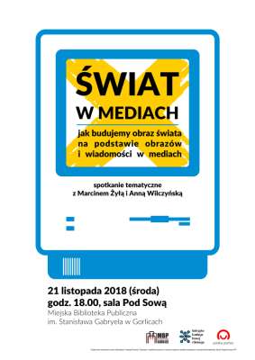 „Świat w mediach — jak budujemy obraz świata na podstawie obrazów i wiadomości w mediach”. Spotkanie odbędzie się 21 listopada 2018 r. (środa) o godz. 18.00 w sali Pod Sową MBP w Gorlicach.