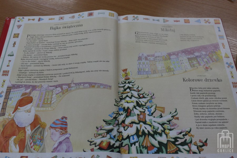 Chociaż za oknem jeszcze jesienna pogoda, zaczynamy myśleć o świętach Bożego Narodzenia, które zbliżają się wielkimi krokami. Podczas ostatniego spotkania Klubu Małego Czytelnika rozmawialiśmy z najmłodszymi o przygotowaniach do magicznej Gwiazdki. A jak święta, to i świąteczne dekoracje — najlepiej własnoręcznie wykonane. Klubowicze wysłuchali Bajki świątecznej, autorstwa Natalii Usenko, a później dekorowali wykonane z papierowej wikliny ozdoby. Oprószone śniegiem szyszki, kolorowe, migoczące gwiazdki, srebrne i złote bombki, kokardki, jodłowe gałązki — to wszystko wykorzystali mali artyści do stworzenia oryginalnych i niepowtarzalnych stroików świątecznych. Małym Klubowiczom życzymy mnóstwa prezentów pod choinką i zapraszamy na kolejne spotkania, już w nowym roku!