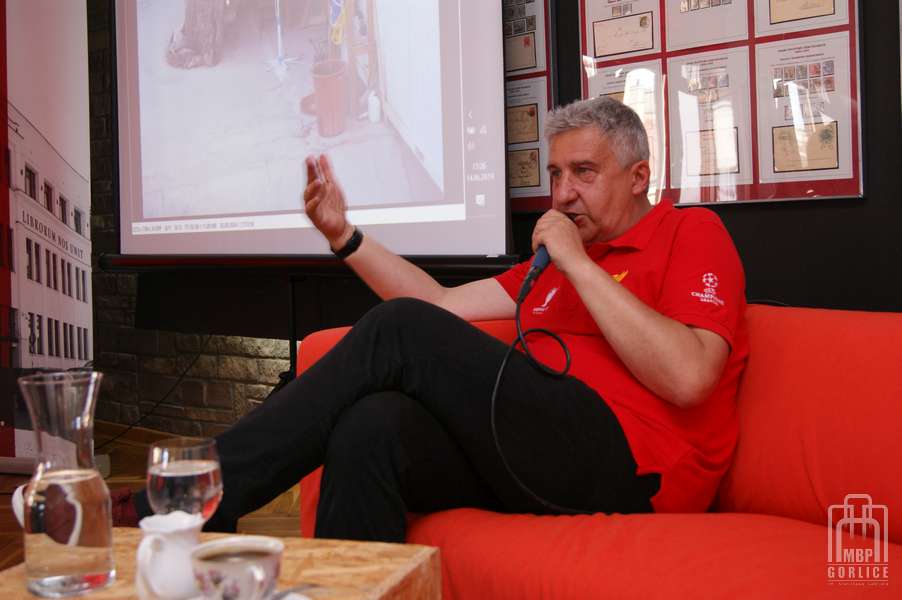 Jak sam mówi jego codzienna praca to realizacja pasji związanej z poznawaniem zarówno miejsc, ludzi, jak i historii. Relacjonował między innymi wojny w Iraku, Afganistanie, na Bałkanach, w Gruzji oraz na Bliskim Wschodzie. Podczas spotkania w interesujący sposób opowiadał o pracy korespondenta wojennego oraz o swoich doświadczeniach zawodowych i obserwacjach wielu konfliktów zbrojnych. Przytaczał ciekawe i jednocześnie przerażające historie z wyjazdów w rejony objęte wojnami. Skutki wszelkich konfliktów dotykają przede wszystkim zwykłych ludzi. Relacjonując wydarzenia z wojny, został niesłusznie posądzony o szpiegostwo. W krajach Bliskiego Wschodu nie ma poszanowania dla życia, a obcokrajowiec musi się liczyć ze słowami, nie może ujawniać swoich poglądów politycznych, społecznych i religijnych, gdyż jest to niebezpieczne i zagraża jego życiu. Nasz gość podkreślił, że informacja, by przynieść efekt, stała się dziś „towarem, który musi być dobrze sprzedany”. Spotkanie zostało wzbogacone prezentacją multimedialną zawierającą zdjęcia i krótkie filmy ilustrujące wyprawy w najbardziej zapalne miejsca na świecie.