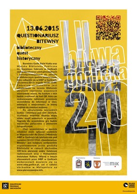 Jesteś tutaj: Start>Projekty>2014–2015>Bitwa Gorlicka 2.0 - 2015>Questionariusz Bitewny — biblioteczny quest historyczny
