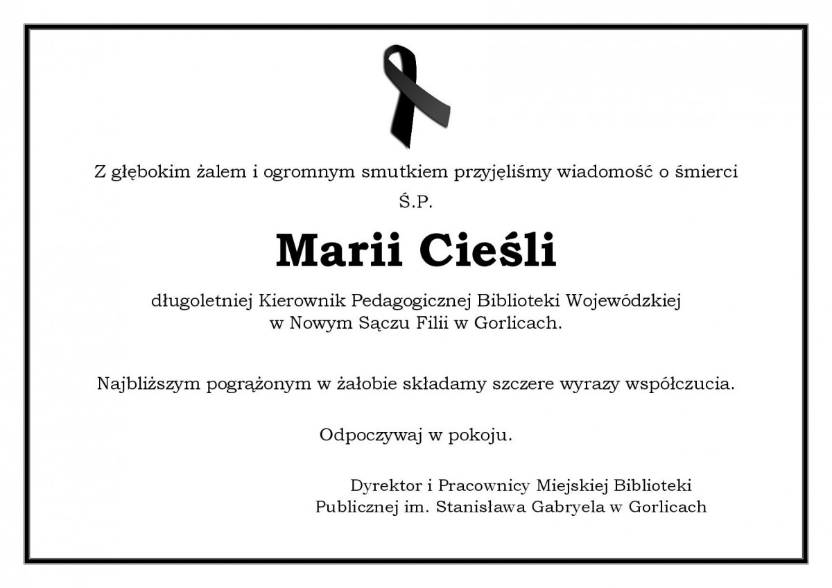 Z głębokim żalem i ogromnym smutkiem przyjęliśmy wiadomość o śmierci