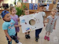 Lekturę można w ciekawy sposób połączyć z twórczą zabawą. Wyjątkowe spotkanie zakończyła niezwykła Książka z dziurą autorstwa Herve Tulleta. Wystarczyło puścić wodze fantazji i wymyślić, czym można ją wypełnić. Wesołym Misiom wyobraźnia i kolorowe kredki podsunęły wspaniałe pomysły, których efekty można podziwiać na zdjęciach.