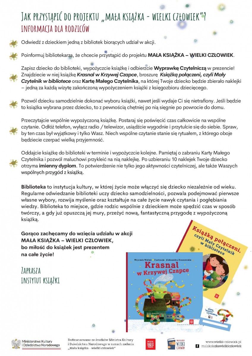 Kampania „Mała książka — wielki człowiek” to projekt realizowany przez Instytut Książki ze środków Ministerstwa Kultury i Dziedzictwa Narodowego.