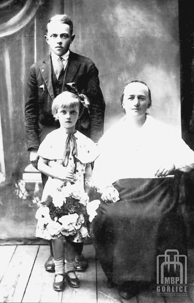 Teofila Białoń — babcia Danuty z synem Janem — ojcem Danuty i córką Heleną; Libusza, ok. 1928 rok
