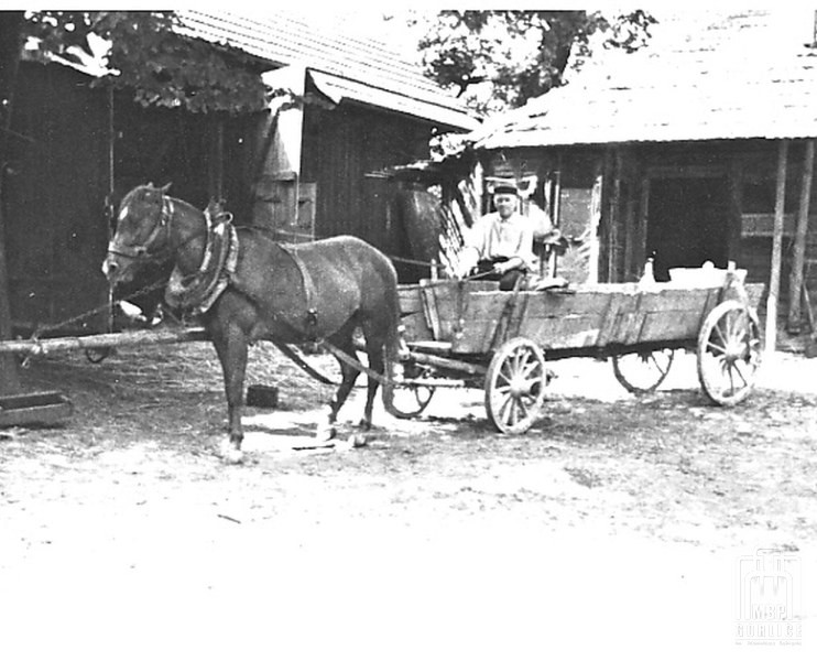 13. Jan Białoń na furze, którą często powoziła córka Małgosia, zbierając dzieci z sąsiedztwa
