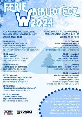 Serdecznie zapraszamy dzieci do udziału w akcji „Ferie w bibliotece 2024”!