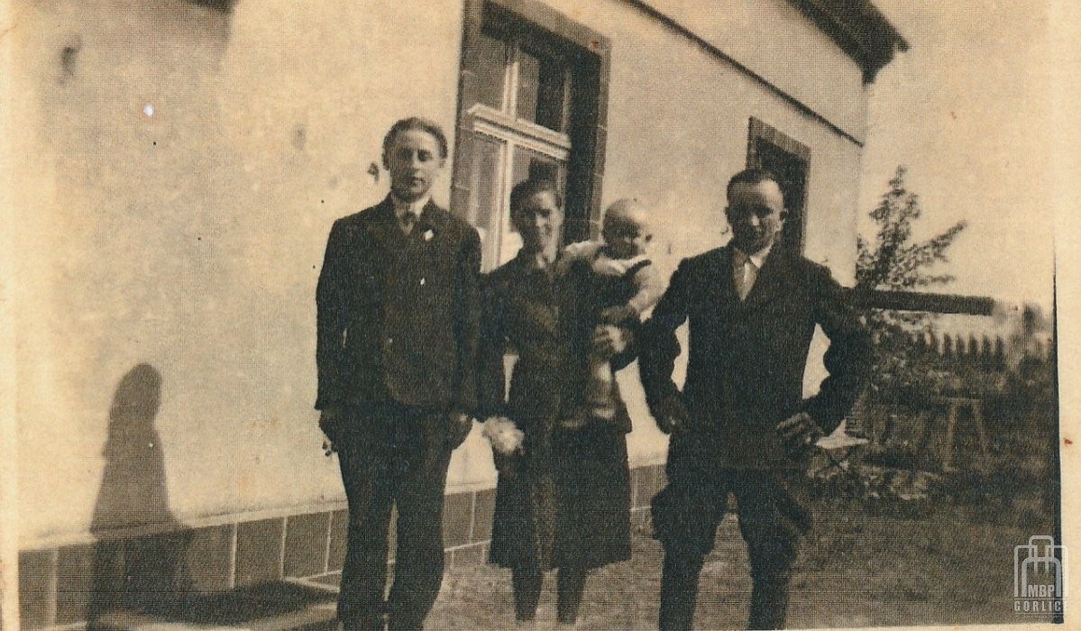 Od prawej: tata Szymon, mama Antonina z synem na ręku, wujek (na Ziemiach Zachodnich)