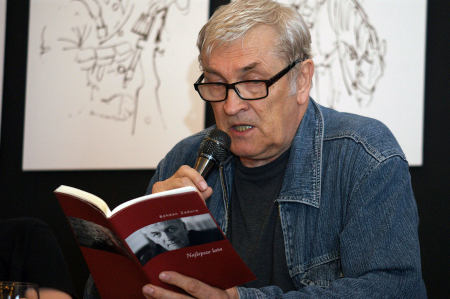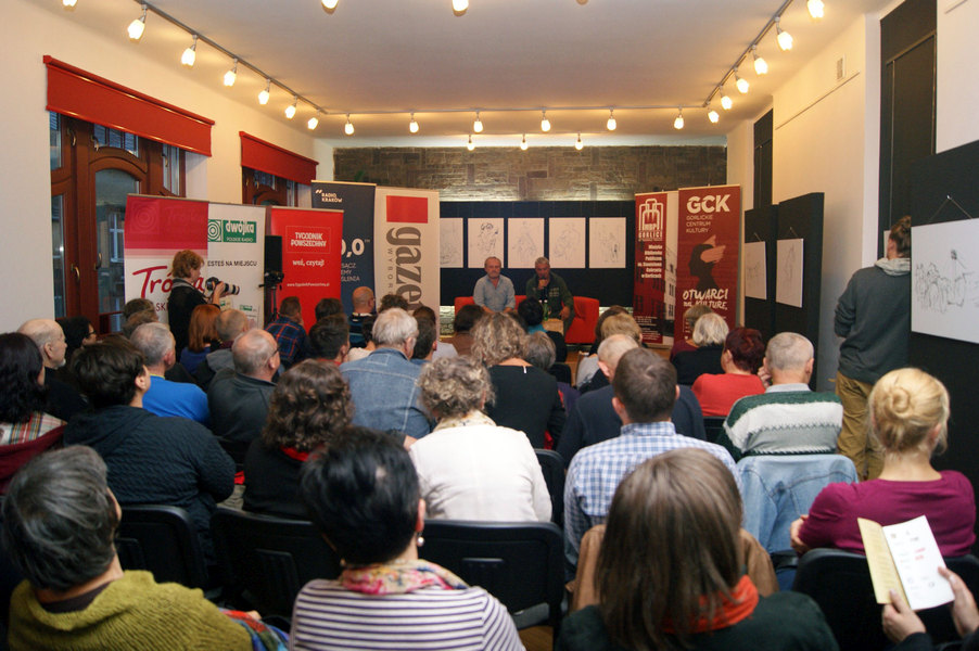 Nie dopisała pogoda, jednak publiczność i tym razem nie zawiodła. Co do złośliwości aury można się jednak spierać, bowiem pierwszym tekstem Zygmunta Haupta, który w piątkowy wieczór zinterpretował dla nas Tomasz Schimscheiner był Deszcz. Nim jednak mżawka połączyła klamrą kompozycyjną to, co działo się wewnątrz gorlickiej Biblioteki i to, co za oknem, na czerwonej kanapie jako goście zasiedli Bohdan Zadura i Taras Prochaśko. Z pierwszym z nich Darek Foks rozmawiał o celnym puentowaniu rzeczywistości, z drugim Andrzej Stasiuk rozprawiał o zapachu i smaku Karpat i słowiańskiej duszy, która ciąży ku gromadzeniu niepotrzebnego. Kodą wieczoru był koncert fortepianowy Mishy Alperina. Jego jazzowe nuty współgrały z bijącym w okna deszczem równie dobrze jak hauptowska proza.