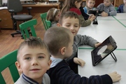 Co interesującego można zrobić w bibliotece? Przecież w bibliotece nie tylko się czyta. Można się przenieść do wirtualnej rzeczywistości, odbyć wyobrażoną podróż po Układzie Słonecznym i odwiedzić Czerwoną Planetę. Przekonały się o tym dzieci z Miejskiego Przedszkola nr 8, które miały okazję sprawdzić, jak działają różne tabletowe aplikacje. Zaczęliśmy od podróży w kosmos. Dzięki aplikacji Amazing Space Journey mali astronauci mogli zwiedzić cały Układ Słoneczny, zobaczyć z bliska poszczególne planety i ich satelity. Co kryje powierzchnia Marsa? Do czego służy łazik marsjański? Młodzi miłośnicy kosmicznych ekspedycji, wykorzystując tablety i aplikację Spacecraft 3D, poznali różne marsjańskie sondy kosmiczne — zobaczyli, jak są skonstruowane i w jaki sposób się poruszają. Mieli także okazję przyjrzeć się, jak wygląda łazik Curiosity, a nawet nim kierować. Potem przyszedł czas na rysowanie. Dzięki aplikacji Drawing Desk powstały niezwykle pomysłowe, barwne prace, z Garage Band dzieci poznawały instrumenty, by później na nich zagrać, a z Duolingo sprawdziły, jak wykorzystać tablety do nauki języka angielskiego.