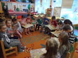Na spotkanie z grupą integracyjną Miejskiego Przedszkola nr 1 w Gorlicach zabrałam tym razem książkę Armando Quintero Nie trzeba słów, która uczy, jak w prosty sposób okazać miłość. Do wspólnej zabawy z maluchami wykorzystałam książki obrazkowe z serii Mamoko Aleksandry i Daniela Mizielińskich oraz publikację pt. Ulica czereśniowa autorstwa Rotraut Susanne Berner. Przedszkolaki próbowały wymyślać krótkie historie na temat postaci zilustrowanych na kartach tych niezwykłych książek, w których nie pada ani jedno słowo. Wyszukiwanie bohaterów i ukrytych w przedmiotów także sprawiło dzieciom dużo frajdy.