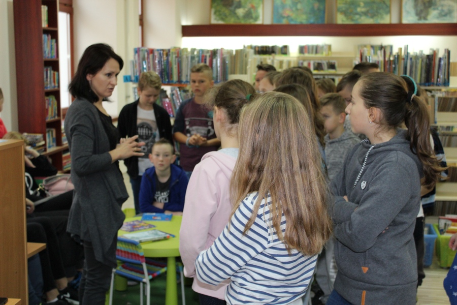 W bibliotece znajduje się wiele książek, czasopism oraz innych dokumentów (audiobooków, płyt winylowych czy kaset magnetofonowych). Jak się odnaleźć w tym gąszczu informacji i odszukać to, co nas interesuje? Odpowiedzią jest katalog — doskonały przewodnik po zbiorach bibliotecznych. Korzystając z niego, czytelnik dowiaduje się, czy poszukiwana przez niego książka znajduje się w bibliotece. Czym jest katalog, jakie są jego rodzaje i jak z niego korzystać? To temat warsztatów, w których wzięli udział uczniowie klas czwartych i piątych z Miejskiego Zespołu Szkół nr 4 w Gorlicach. Młodzi czytelnicy zapoznali się z księgozbiorem biblioteki (ze szczególnym wskazaniem na zbiory dla dzieci), komputerowym systemem wypożyczania książek oraz katalogami — zarówno tradycyjnym/kartkowym, jak i współczesnym on-line. Dowiedzieli się również, według jakich zasad ustawia się książki na półkach. Uczniowie zaznajomili się także z pojęciami, takimi jak: karta katalogowa, opis bibliograficzny, UKD oraz hasło przedmiotowe. Po krótkim wprowadzeniu dotyczącym działania katalogu elektronicznego przyszedł czas na zajęcia praktyczne. Uczniowie wyszukiwali w katalogach on-line informacje na temat wybranych pozycji książkowych — według autorów, tytułów oraz haseł przedmiotowych. Szukali książek o kodowaniu, zwierzętach domowych, a także sprawdzali ich aktualną dostępność. Mamy nadzieję, że po zajęciach uczniowie będą wiedzieć, jak korzystać z katalogów, a wszelkie oznaczenia cyfrowe i literowe, które znajdują się na grzbietach książek już ich nie zaskoczą.