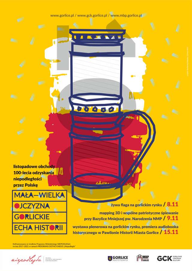 Projekt „Mała–wielka Ojczyzna — gorlickie echa historii” został złożony przez Gorlickie Centrum Kultury, a realizować go będą także Miejskie Zespoły Szkół w Gorlicach, parafia pw. Narodzenia Marii Panny w Gorlicach, Urząd Miejski w Gorlicach oraz Miejska Biblioteka Publiczna w Gorlicach.